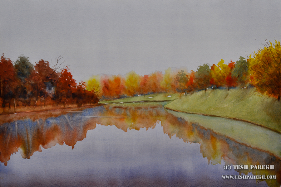 Another painting of the fall in Raleigh. This one is from the North Ridge Country Club area. One of the many autumn paintings I am working on! I am enjoying capturing the colors in impressionistic manner. Winter will be a good time to make some drybrush paintings…