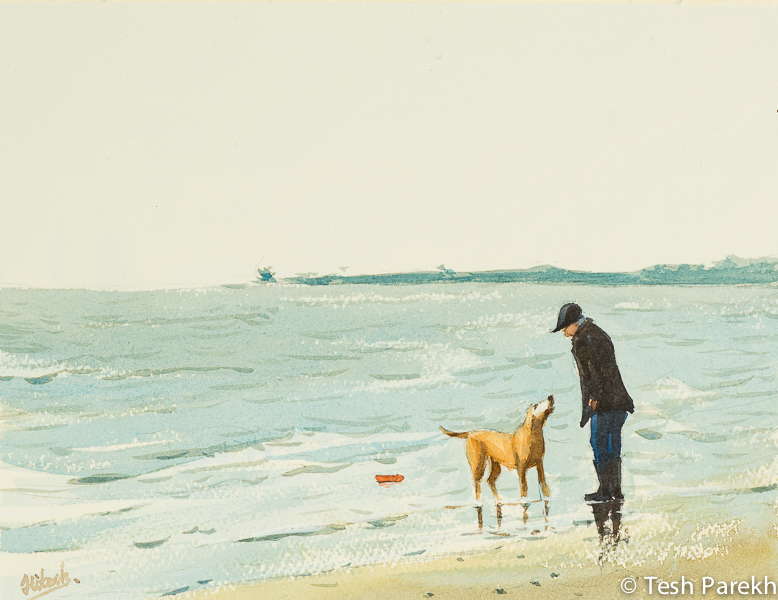 Fetch # 1. Watercolor painting on paper. 9x12.