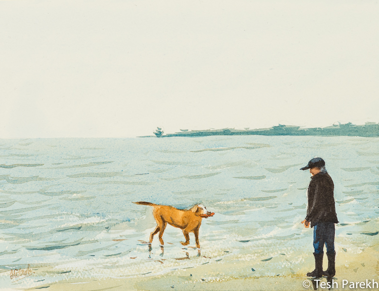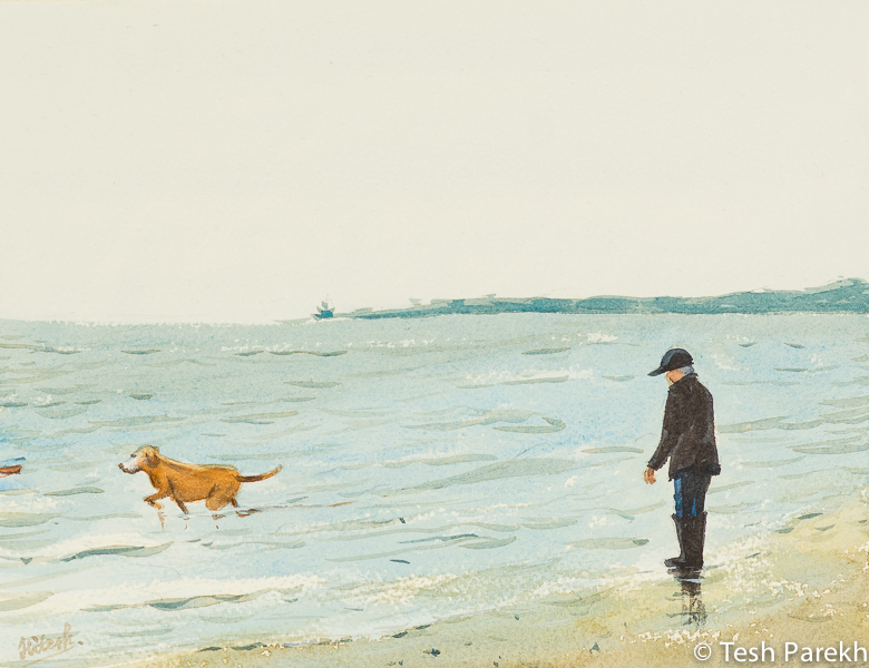 Fetch # 3. Watercolor painting on paper. 9x12.