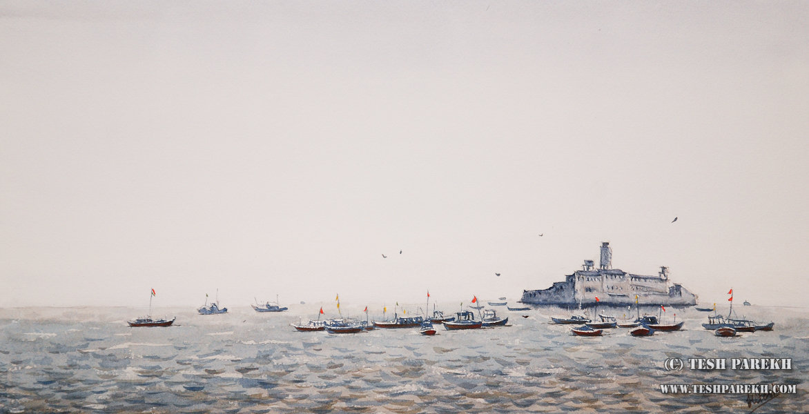 Apollo Bunder, Mumbai on a hazy and hot later Sumer day. I saw this view on my recent trip to India. The islet is Middle Ground Coastal Battery. One of my many Mumbai paintings. I am working on some more paintings of South Mumbai. I love the old Victorian and English architecture of many of the…