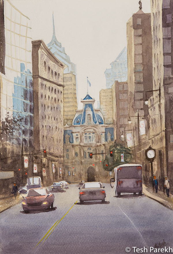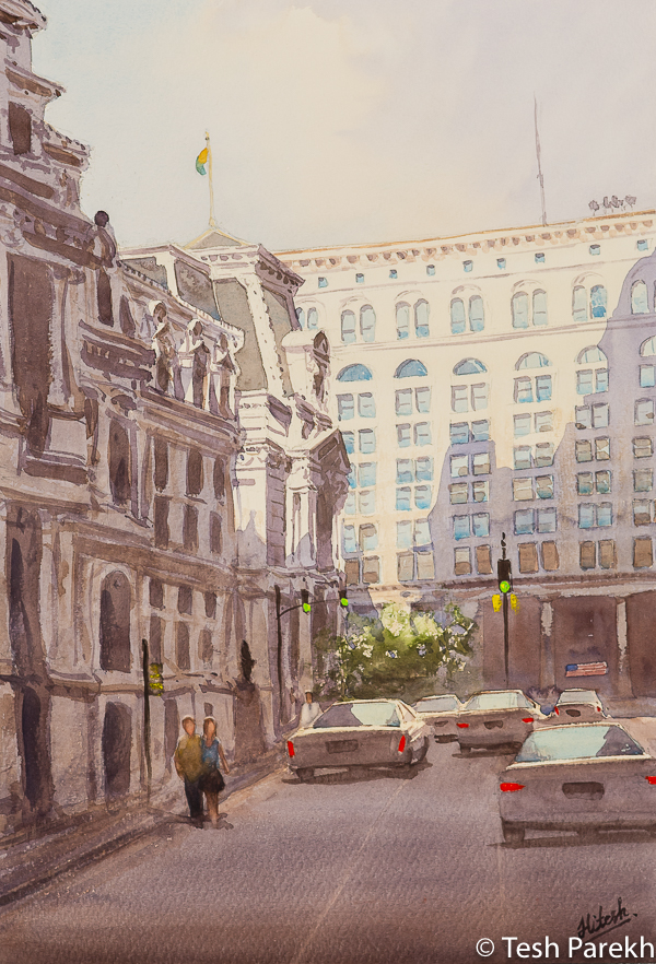 I have been doing a series of Philadelphia paintings and these are two from last year. From my trips to this beautiful city couple of years ago. Although I had been there few times in the past, this time I had opportunity to visit downtown and see amazing architecture of historic buildings. I was there with my family and we all enjoyed our short stay. We had stayed close to the City Hall so I got to admire it everyday. In fact, I could see it from the hotel window.
