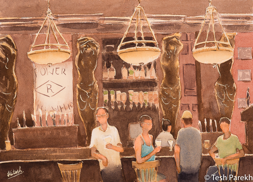 Raleigh Art - "Happy Hour". 10x14. Watercolor on paper.