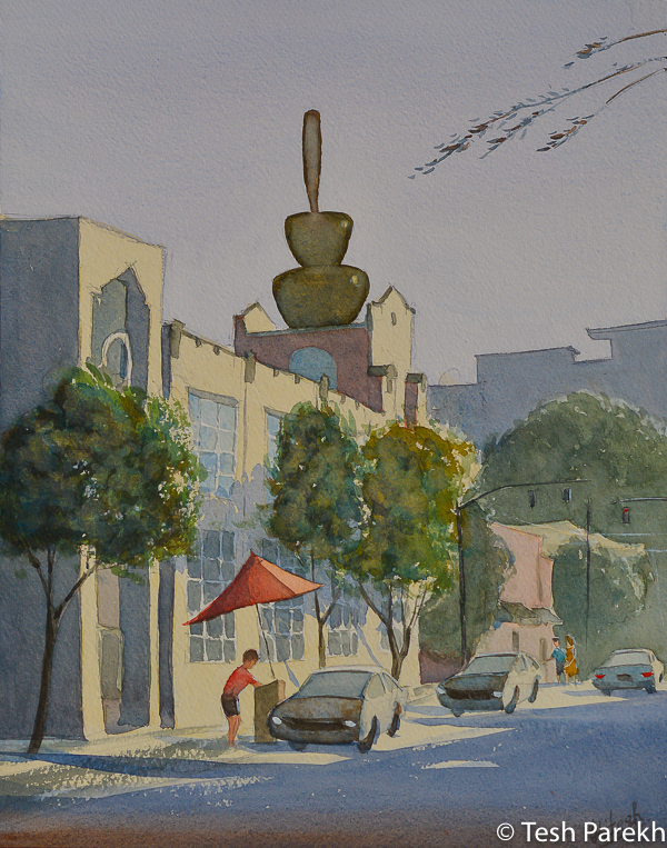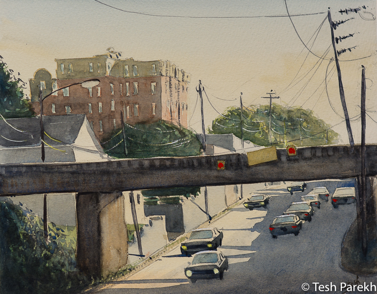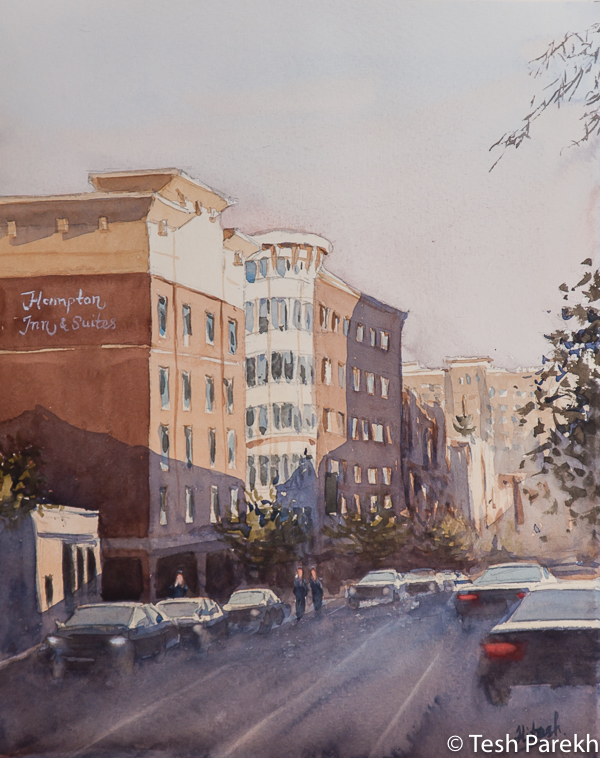 “Tucker Street Evening”. 14×11. Watercolor on paper.