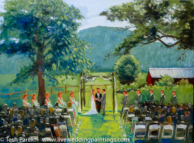 My recent live wedding painting commissions- not in any particular order. As you can see, I paint both ceremony and reception and I also paint in oils as well as watercolors. I paint indoors as well as outdoors! I will be blogging about each painting on my dedicated Live Wedding Painting website- please be sure to check out and register for updates!